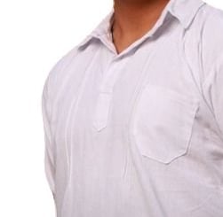 Prenda principal: Camisa corta y suelta de manta blanca.