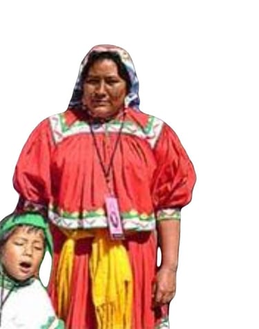 Accesorios: Falda o enagua, faja para sujetar la falda, rebozo, collares de cuentas, aretes y listones en el cabello.